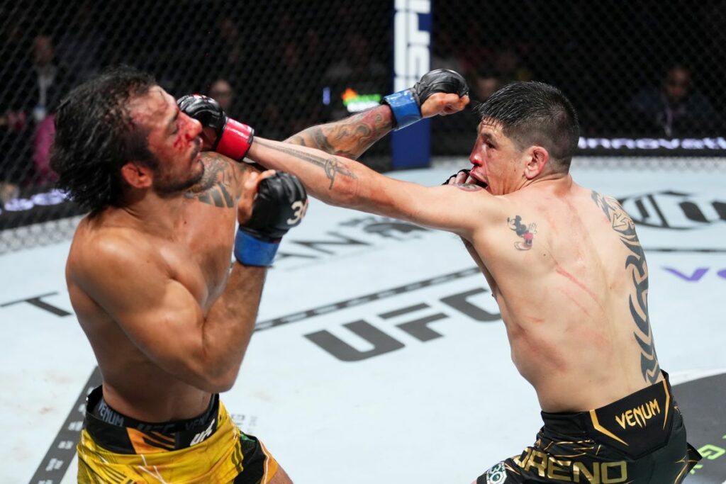 Le Nîmois s’est révélé aux yeux du grand public au cours de cette année 2023. Tout cela a commencé le 1er juillet, alors matché face à Ismael Bonfim, crack brésilien largement favori. « God of War », délivre une performance PARFAITE. Avec une soumission venant récompenser un excellent premier round, notre Français s’impose dès la première reprise. Une performance qui va lui permettre d’être booké sur la main card de l’UFC Paris 2, face à un adversaire connu des fans de l’UFC, Thiago Moises. Comme face à Bonfim, notre poids légers va délivrer une performance complète est très enthousiasmante. Avec un TKO à la fin du deuxième round, l’ancien de l’armée française va s’imposer comme une nouvelle star du MMA en France. Sa troisième et dernière sortie de l’année fut lors de la très belle carte de l’UFC 295. Des performances récentes qui vont le pousser au pied d’une main card numérotée, une première pour le Français. Et ce combat face à Matt Frevola, sera la bascule dans la carrière de BSD. Avec un KO sublime en seulement 1min 31s, face à un top 15 de la catégorie, l’ancien combattant du Brave se révèle aux yeux du monde. Après son combat, il sera même invité par Ariel Helwani preuve d’un gain en popularité.